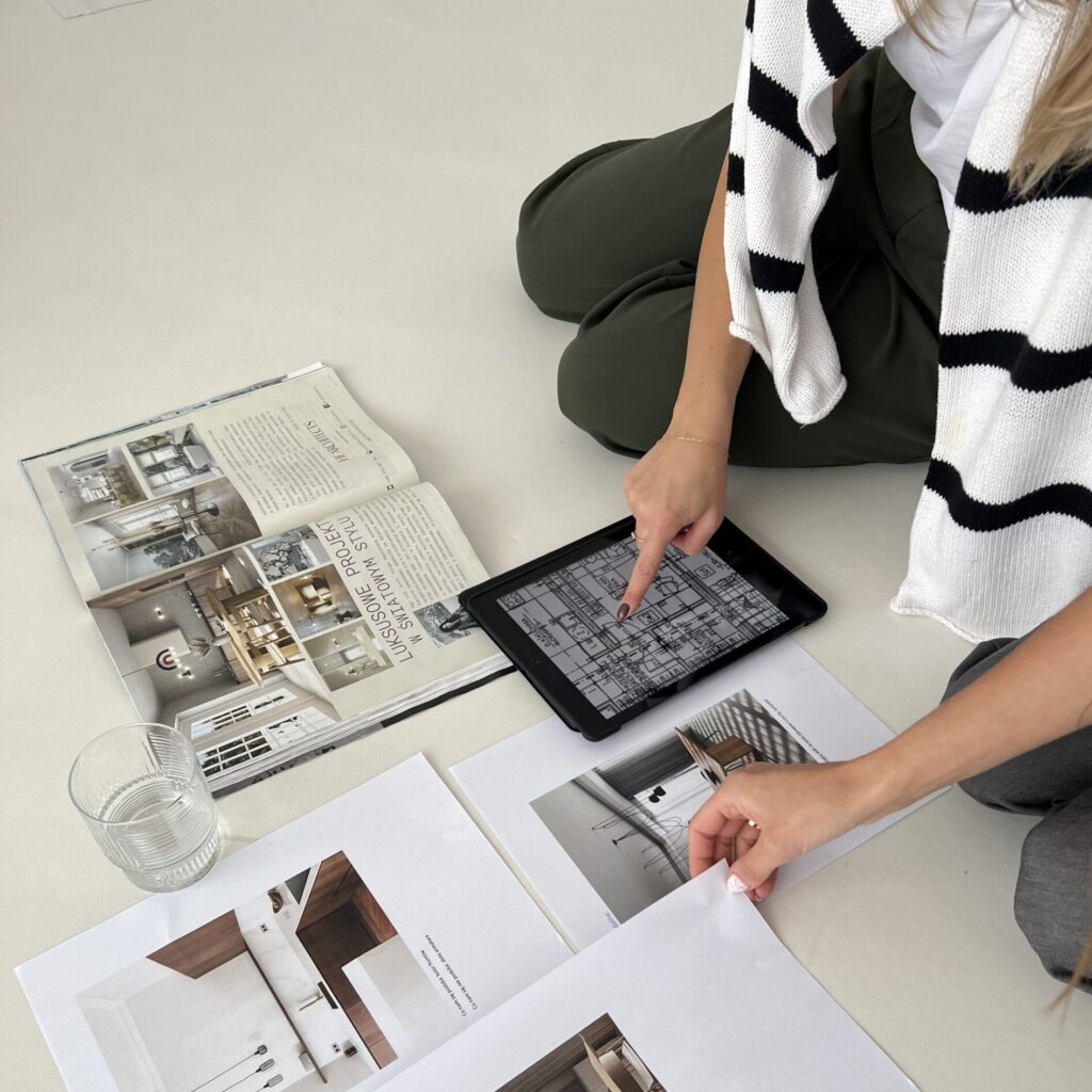 Na samym początku współpracy wykonujemy dokładne pomiary przestrzeni i/lub digitalizujemy przekazane materiały od dewelopera. Podczas spotkania przeprowadzamy ankietę oraz omawiamy dokładnie wybrane inspiracje, by jak najlepiej poznać Twój styl życia, potrzeby i oczekiwania. Te fundamenty pozwalają nam uniknąć wielu niedomówień i błędów.