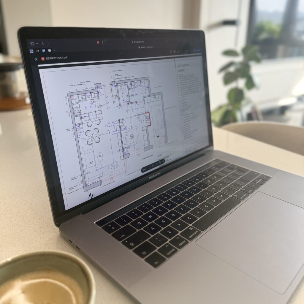 Opracowujemy dokumentację wykonawczą zawierającą szczegółowe informacje o projekcie, w tym rozwinięcia ścian, rzuty punktów elektrycznych oraz wodno-kanalizacyjnych, schematy ułożenia płytek, listew dekoracyjnych, a także wiele innych detali. To instrukcja obsługi dla wykonawców, dzięki której unikamy domyślania, a Ty masz spokojną głowę.