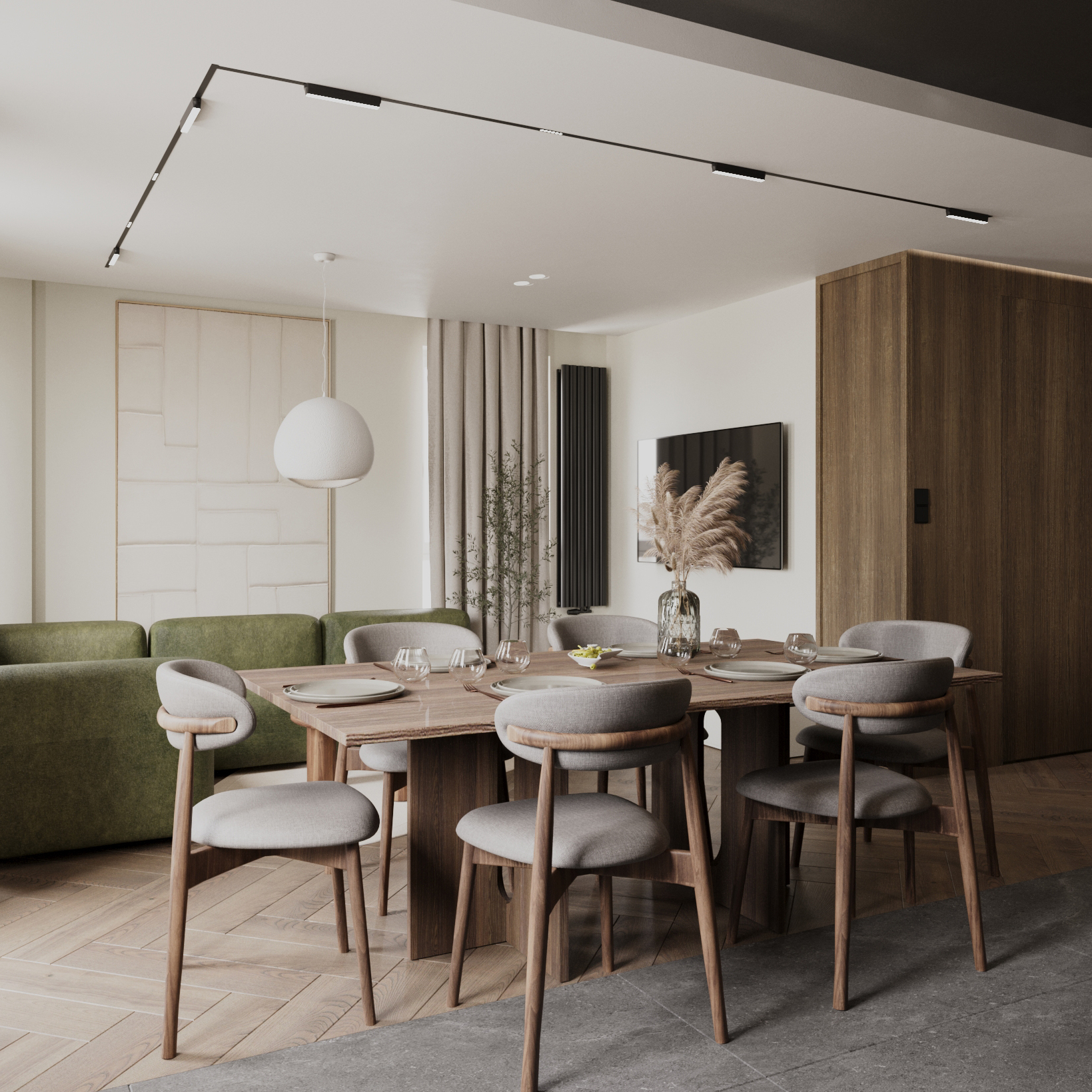 Apartament Bemowo Neowo W tym projekcie główne skrzypce grają odcienie antracytu oraz designerskie dodatki. Kanapa Muto z IWC Home w kolorze zieleni – obłędna! date 2025-06-15